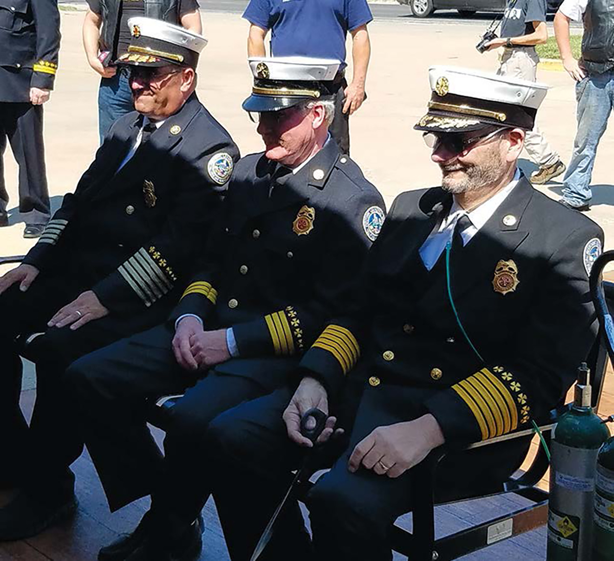 From the Knob Noster ceremony, I traveled to Lexington, where they were dedicating their Line-of-Duty-Death (LODD) Memorial. Assistant Director Josh Koepke of the Kansas City Fire Department joined me at this ceremony. The department was honoring two firefighters that were killed in the line of duty. Those firefighters that were honored were Firefighter John Lukenbill who was killed in 1939 and Firefighter Paramedic Harold Hollingsworth who was killed in 2013. These gentlemen were honored with a statue in front of the station and their names were placed on the statue. The Lexington Fire Department also honored Former Chief Kirk Smith who served the department for twenty-five years. Kirk was a great teacher when I started my career in the fire service. He would always give you a helping hand whenever you needed it, a great mentor for sure. Congratulations Kirk on your retirement and thank you for your service to the citizens of Lexington and thank you for being a great teacher to me and others in the fire service. Chief Brad Weber thanks for the invite, it meant a lot to me to see everyone and to be a part in your ceremony.
