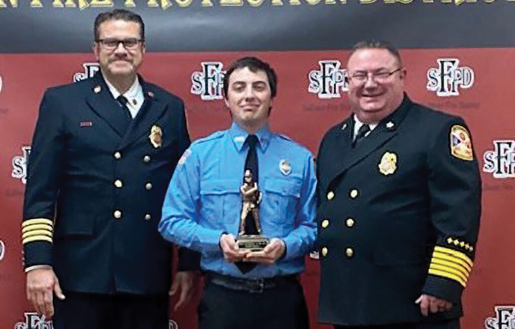 The second picture is Firefighter/EMT Jacob Dace, 2024 Paid Firefighter of the Year. Jacob has been with the SFPD for just over 5 years. He is also a member of the state’s swift water task force. He constantly stays busy and engaged, helping on numerous critical projects, such as revamping all district-run cards. He has gotten his Instructor 1, Fire Officer 1, ICS 300 and 400, and is almost complete with his Paramedic licensure. Jacob also received a Unit Citation Medal for a swift water rescue during extreme flooding in 2024.