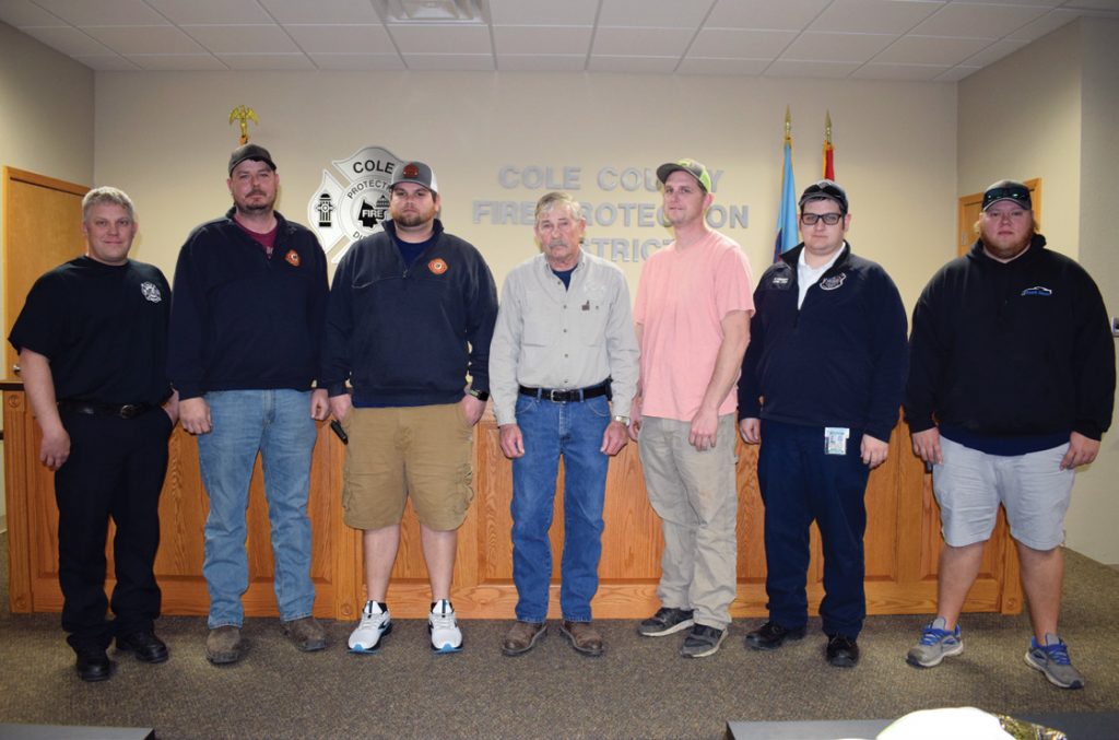 During the past year, the Cole County Fire Protection District lost Senior Assistant Chief Galen Hammann and Assistant Chief Robbie Hammann. With their passing, the Fire District has made the following promotions as shown in the picture below. Pictured from left to right are; Assistant Chief Scott Kempker, Assistant Chief Jason Hammann, Captain Justin Braun, Fire Chief Wayne Hammann, Captain Adam Bashore, Lieutenant Mac Kennedy, and Lieutenant Bradley Kempker.