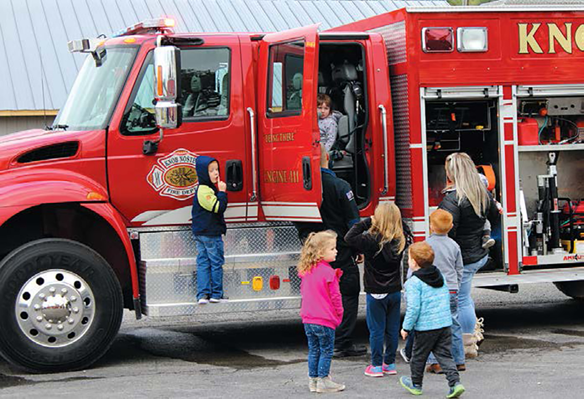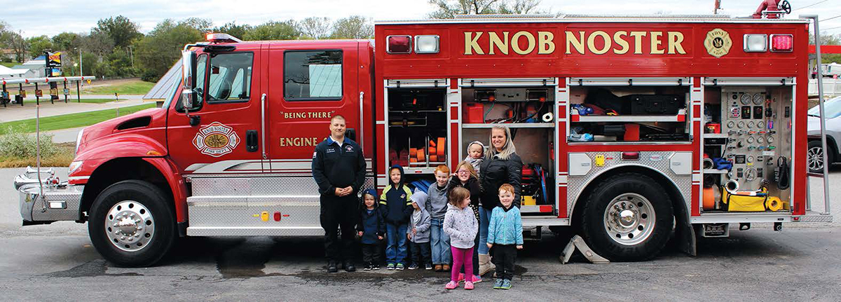Knob Noster Fire Department makes eight fire prevention presentations during Fire Prevention Week. Lieutenant Tim Merrill and Fire Fighter Nathan McIntyre are pictured making presentations and giving a tour of Engine 411. Captain Steven Ashbridge scheduled the programs and made presentations at different schools and preschools.