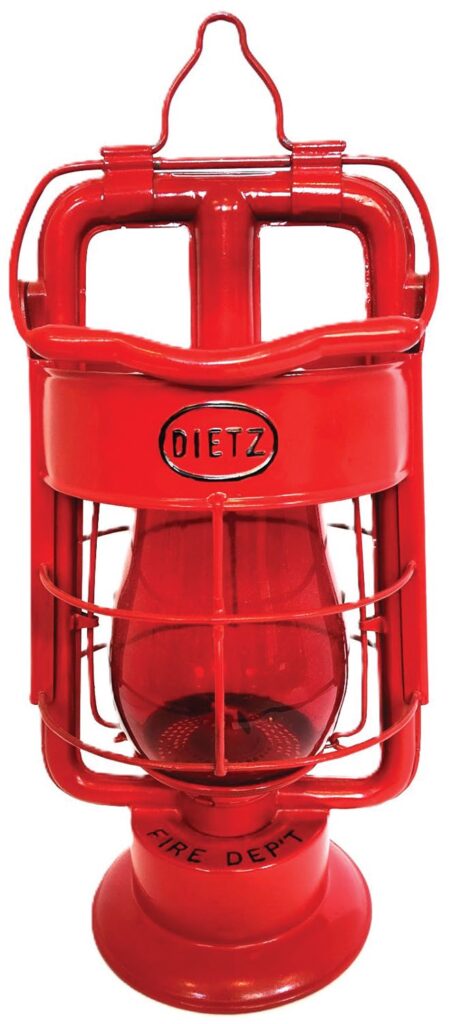 Though the new motorized fire apparatus with electric lights would replace the embellished apparatus lamps, the simple lantern would continue to hold a place in the fire service for the next several decades. The dependable hand lantern would see a service life competing well against the new battery and bulb-operated flashlights for fireground lighting purposes. A well-maintained and fueled lantern would always be ready for service compared to the fragile early bulbs and limited-life batteries of the early flashlights. American LaFrance Fire Engine Company, Inc. continued to provide two Dietz Fire Department lanterns as standard equipment on their various models of motorized fire apparatus through the 1920s.28
