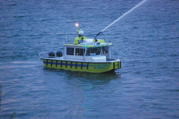On April 14, 2014 the Western Taney County Fire District placed a 32’ fire boat, built by Lake Assault Boats in Superior Wisconsin, in service on Table Rock Lake. It has a 1,500 GPM Darley pump powered by an inboard motor connected to TFT master stream and 2 1/2” and 5” discharges. It is propelled by twin 300 HP Mercury outboards and lighting and A/C is powered by a 5KW generator.