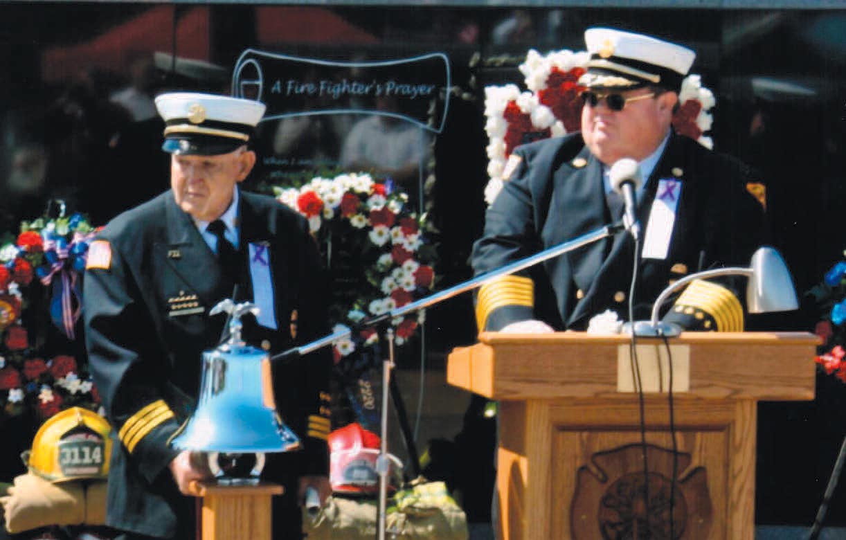 In the mid 1990’s Dad had a vision and desire that Missouri needed a firefighters memorial and museum. At more than one convention Dad approached the presidents of FFAM with his request. Finally at the February meeting before the O’Fallon convention and after much intense discussion with then FFAM President Jim Barger, President Barger appointed Art Smith to a committee with the task of building a firefighters memorial. No surprise the memorial was important to Dad. Something he put countless hours into getting it started, getting it built and then keeping it going. He could always be found at the memorial just about every day weather permitting. Dad gladly took on the position of memorial ambassador. You could tell by his talks with anyone stopping by that his love was the fire service and the memorial. He would sometimes become discouraged with the fund-raising but he refused to ever give up. Because of his efforts and leadership, we now have one of the finest memorials in the United States. Besides keeping the weeds out of bounds with things, it was his honor in ringing the bell during the annual Sunday services. His example should encourage all of us to work diligently to complete the educational/museum complex. Dad is overlooking us as we strive to see that hope and vision eventually accomplished.