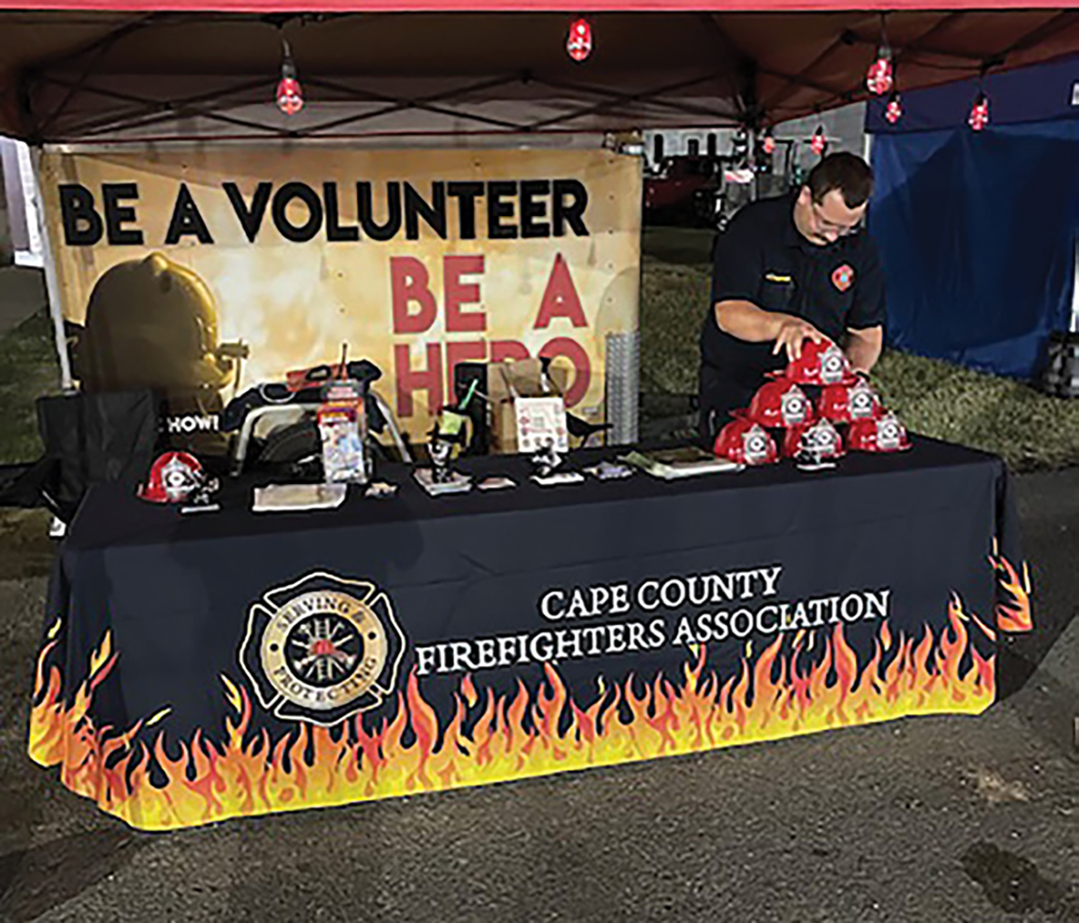 The Cape County Firefighters Association set up a booth at the SEMO District Fair this year. Firefighters from member organizations handed out coloring books, fire helmets, safety information, and information links to the member organizations. This was also a recruiting event for the area fire districts and fire departments.